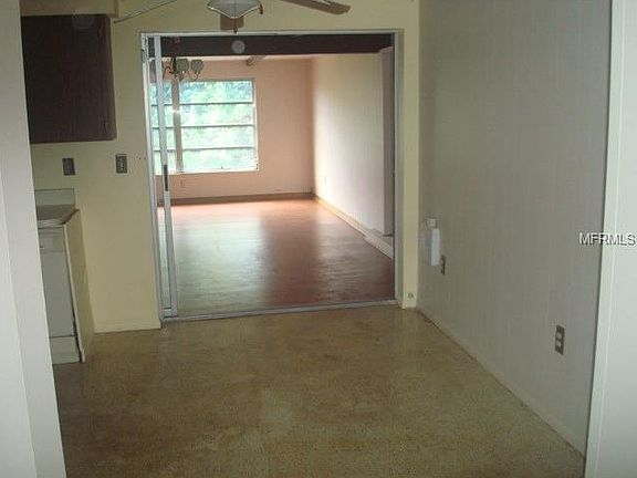 2/2/1 that needs a variety of repairs and new flooring. In a good location with County water on a large corner lot. 14 SEER air conditioning installed in 2004. The enclosed porch shown on the building sketch was converted to a family room (see photos) and has laminate flooring and a beamed ceiling. The inside laundry room has cabinets, a door to the exterior, and lots of extra space for ironing board, storage, etc. The master bedroom has a direct door to the family room as does the dining area. The good sized garage has a deep sink, shelves, cabinets, door opener, and a side door. There is an 8'X8' storage room on back of house that also houses the irrigation system's well pump equipment. This property is in the County sewer expansion zone. The present owner has not occupied the premises nor operated the irrigation system, security system, any other systems, nor any of the appliances, and he will do no repairs. Property Appraiser's Report, Building Permit Report, Building Sketch, Sewer Expansion Letter, and Tax Collector's Data are attached as Supplements. The Federal Pacific circuit breaker box can be insured through Security First or Citizens.