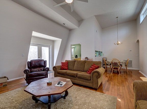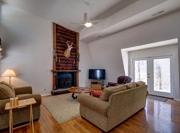Contemporary Charmer in Prestigious Bear Paw Resort...this modern home has it all. In the front, wooded land and mature trees; in the back, a perfect patio for entertaining, with French door access and stone fire pit to keep evening gatherings warm. Elegant stone exterior with unique sloping rooflines for great shade and insulation year-round. In the living room, high windows flood pure white walls in natural light; unique wood stove setting features log chimney. Mere steps separate an efficient galley kitchen with nifty pass-through window, laundry and storage behind louvered doors, and dining nook. Three spacious bedrooms, soft carpeting, beautiful wood floors. One-level convenience!