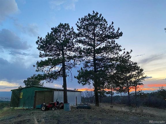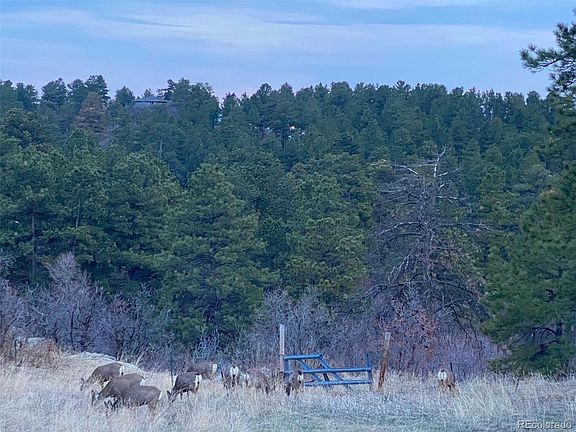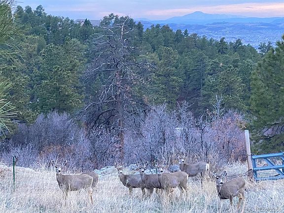 Stunning views of Pikes Peak, Castle Rock, Rampart Range, and Mount Evans! Stunning sunsets! Beautiful mature ponderosa pines, 777 sq. ft. barn and loafing shed on the property. Great cul-de-sac, buildable lot that is sloped for a walkout basement. Room for a barn, horses allowed. Douglas County allows for 2 horses per acre. New domestic well permit available, soil report, septic perc test and design available, natural gas is at the street. Electricity is already on the property. The barn is currently used as a chicken coop and for storage. Access to be provided upon request.