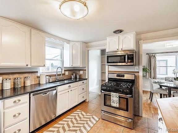 This WWII-era Chaffee Park 4-bedroom ranch is a subtle statement in character & class. Built during a time where less is more -- its urban craftsman elements are an understated and efficient design blueprint. Coved ceilings, arched doorways, oak hardwoods and mid-century hints give the living area a modish appeal. The red brick fireplace and distinctive dining room lead to french doors and a quaint covered front portico. With a mix of butcher-block & quartz countertops, the kitchen is smartly updated and features newer stainless-steel appliances and a roomy flow. The basement area is fully optimized with a functional laundry, flex room, 1 newly egressed bedroom + 1 non-conforming, & brand new carpet. The backyard showcases the large 6250/sf lot complete with custom garden boxes, private covered patio, and 1-car detached garage. Just minutes to Regis University, Cobbler`s Corner, and I-70 access for quick commute to city or mountain. Good design never gets old.