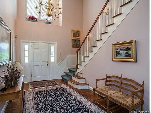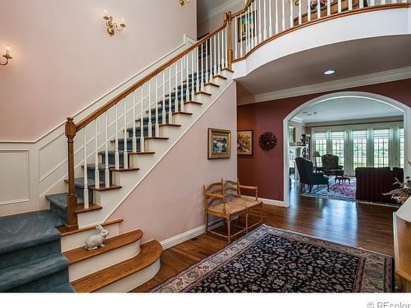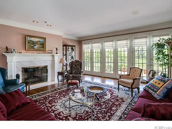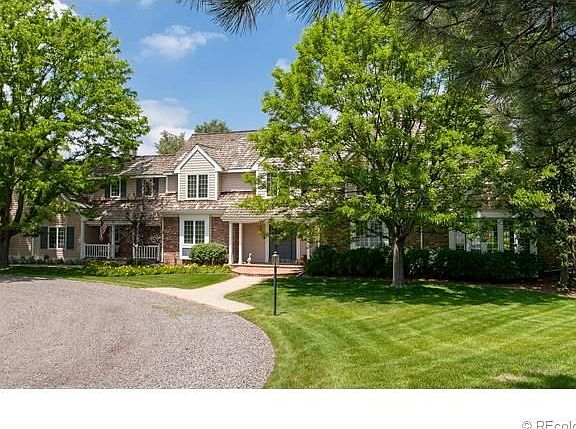 This elegant home is nestled in the heart of Cherry Hills. Zoned for horses, the 2.2 acre site enjoys views of a pond and is within walking distance to the Highline Canal. Inside, the French doors open to spacious patios, perfect for viewing blue Irish flax in the spring, and snowy vistas in the winter. The interior finishes embrace hardwood floors, crown molding and built-in bookcases in the cozy library. The large main floor office is cheerful with its southern sunshine..it is also suitable for use as a main floor bedroom with adjacent 3/4 bath. Welcoming and spacious, the kitchen/great room is a perfect gathering place with its vaulted ceiling and brick fireplace. The dry-walled studio has roughed-in plumbing and electrical..a perfect opportunity to complete as your personal dream space. The walkout basement is ideal for relaxing with the family and contains a wet bar, guest room and bath. The home offers 5 or 6 bedrooms, 6 baths and 7,958 square feet of living space.