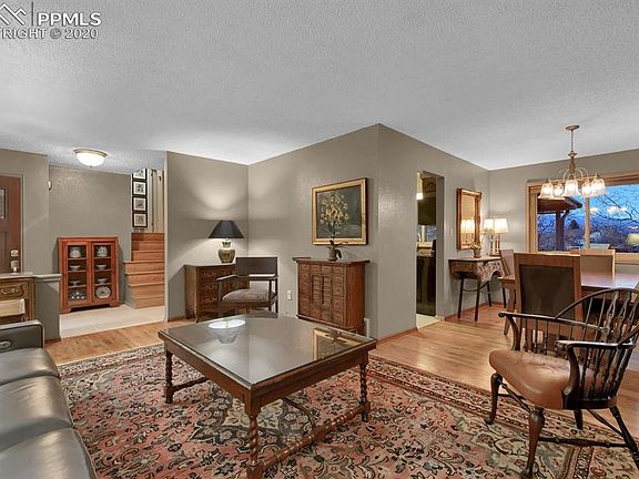 Cared for home in the Old Farm neighborhood. Pride of ownership with detailed maintenance and upgrades. Quiet street with mature landscaping and large trees. Outdoor covered deck off of the kitchen faces west with a view of Pikes Peak! Upper bedroom also with mountain view. Backyard is fenced with a covered deck for shade. Sod patch repair is paid for and scheduled for spring. Hot water heater replaced January 2020 - ready for the new owners! Additional details: Master bath remodel 2018,Double panel windows, hardwood on main floor and stairs, 12/2019 new breaker panel and new wiring in garage installed, leaf guards, 2016 new roof, exterior painted 2017, extra insulation in attic, central AC/heat/humidifier 2014, upstairs recently painted, six parking spaces plus covered space for RV in side yard.