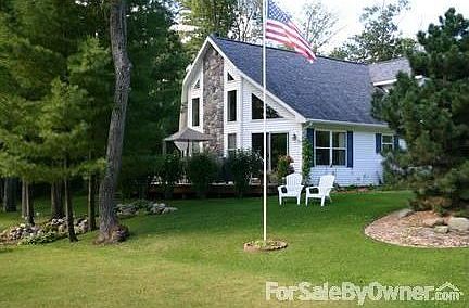 Built in 2000. Garden/Tool Shed(wired, pull-down stairway, loft). Exterior walls of home are 6" thick. Tall crawl space, with cemented floor and insulated walls. Oak hardwood floors. Finished Bonus Rm. above garage with stairway access(separate heat,cool). Complete landscaping(finished). Sprinkler system covering all lawn area. Security alarm system/carbon monoxide. Beautiful location, lake visible from kitchen table. Floor to ceiling stone fireplace(set up to burn wood, but has gas line run for other). 300 foot lake front easement in front is deeded , non-buildable. Approximately 300 feet to waters edge, beach. Outside shower(enclosed). City water, septic system. Cedar Deck. 2011 Property Taxes(Year) : 1310.00 Additional property info: http://www.forsalebyowner.com/listing/3-bed-Single-Family-home-for-sale-by-owner-4880-Interlake-Dr-48750/21942524?provider_id=28079