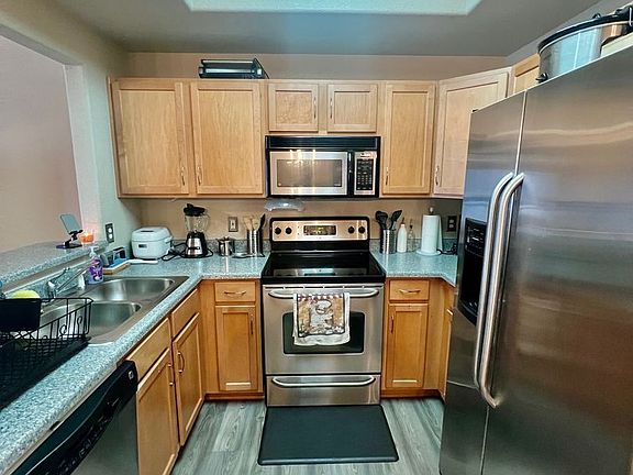Welcome to your modern 2-bed, 2-bath condoa cozy retreat with all the bells and whistles! The kitchen's got shiny stainless steel appliances, including a handy dishwasher for easy cleanup after cooking up your favorite meals. Hang out in the comfy living room, then head outside to your own little patio for some fresh air and relaxation. Attached to the living room is a great sized dining room, perfect for family dinners or hosting friends. Both bedrooms are carpeted for extra comfort, with the master bedroom having a walk in closet and attached bath! Additionally, with central air conditioning, you'll stay cool in the summer and cozy in the winter. HOA covers not just the basics like snow removal and landscaping, but also your water/wastewater. Additional amenity includes, a one-car attached garage for your convenience. Ready to make this modern oasis your own? 12 Month Lease Security deposit must be paid in certified funds. Amount based on credit report findings. Allows 2 pets, up to 100 pounds. No aggressive breeds. Management approval needed.