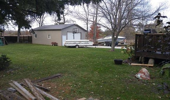 Fantastic, updated ranch on large wooded lot backing to fields. Attractive eat-in kitchen features espresso cabinets, laminate floor, ceramic backsplash, appliances, atrium door to deck. Large living room has bright picture window, hardwood floors. Three generous bedrooms with nice closets. Full bath with ceramic floor, vanity. Terrific basement rec room (2015) has pellet stove, recessed lighting. Fully fenced yard with 2-story garage/pole barn (32x24). Updates: electric svc, bath & kitchen (2012), tear-off roof, windows, ext doors, siding, driveway, barn, fence, walkways, landscaping (2014).