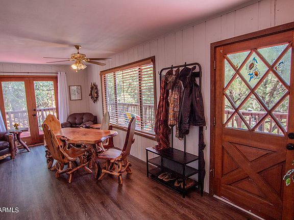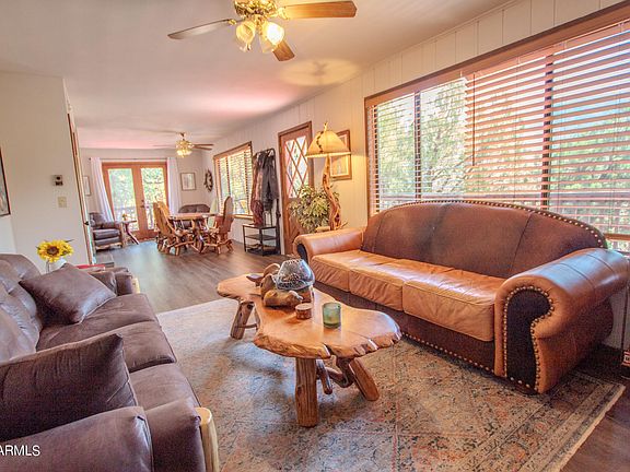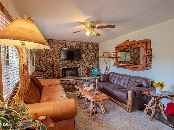 Nestled among towering Pines in a fancy gated community, this charming cabin boasts three bedrooms, two bathrooms, and jaw-dropping vistas. Savor the peaceful mountain backdrop from different spots like the living room, patio, and upstairs sanctuary. The main floor is a snug haven with a crackling fireplace, a kitchen, laundry nook, a bedroom, and a bath - perfect for laid-back living. Upstairs, two bedrooms and a bath await, granting a peaceful retreat with breathtaking mountain views. Need some quiet time? Slip away to the back patio for some serene moments. Don't snooze on this chance to own a slice of mountain paradise in the exclusive Portals 2 community! Book a tour now and start dreaming about the adventures waiting for you in this cozy abode!