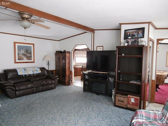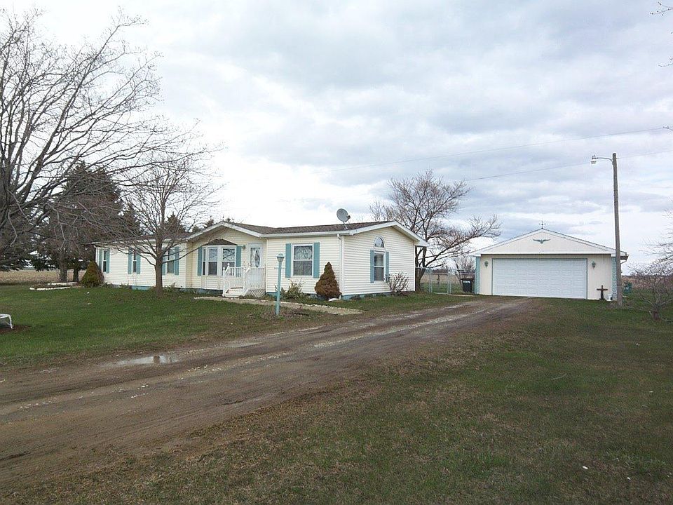 Three bedroom, two bath ranch in the country with beautiful views all around. Built 1986 (manufactured) with open floor plan, 1,500 square feet, vaulted ceilings, island kitchen with newer stainless steel appliances, and main floor laundry. Master bedroom has bay window and master bath with garden tub, skylight, double sinks, and separate walk-in shower. Deck, 2 car garage, fenced yard, pole barn too! Many updates. Affidavit of Affixture included.