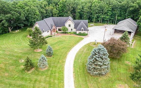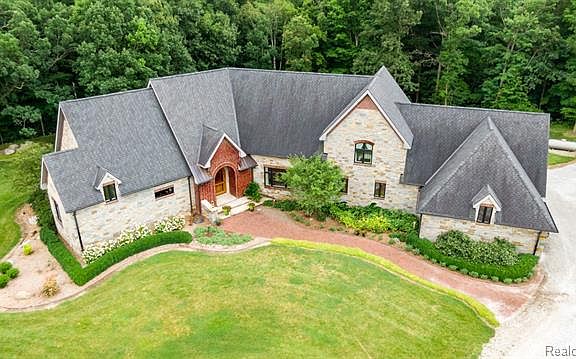 Spectacular French country manor on 40 private acres and almost 1/4 mile on scenic Mill Creek! Outstanding architecture! Hand scraped hickory flooring, cork flooring, bead board wainscoting, oak arched windows and custom ceilings throughout. Vast gathering room offers unbelievable views and access to tiered limestone patio. Gourmet Chef's kitchen has soapstone bar counter, custom stainless steel work counter, and high end stainless steel appliances. Master BR suite alone is 650 sqft. and it has English antique pieces, freestanding bubble tub and European walk-in shower. Geothermal heating/cooling, extremely well insulated. Radiant floor heating in garages, master bath, foyer and basement. 3 attached pole barns including heated/insulated workshop w/220 amp service. Plenty of storage for your motor home, boat, tractor, ATV's- even small airplane or helicopter. Please see features sheet for many more details. Absolutely no expense was spared creating this timeless one-of-a kind retreat!