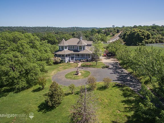 Stunning French Country Estate situated on over 10 level/usable acres. Located in the private Latrobe community of Sun Ridge Ranch. Minutes from El Dorado Hills Town Center & Hwy 50. The wrap around porch, exquisite detail & finishes make this home boast with character. Coffered ceilings, crown moulding and accents throughout. Side load 3+ car garage w/ plenty of space for horses, animals, toys or whatever you imagine. Serene property w/ mature Heritage Oaks provide a tranquil backdrop.