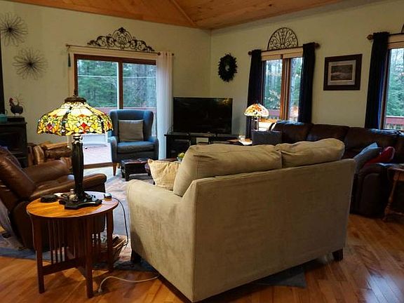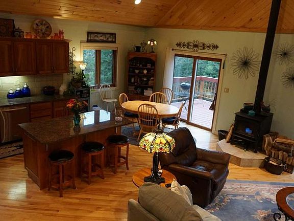 A real Northwoods gem private & secluded on two wooded acres. As you enter the home you will see the gleaming maple wood flooring in the living room & kitchen/dining area. The kitchen features cherry wood cabinets, granite counters and all stainless steel appliances. The vaulted ceiling features tongue & groove pine. Master bedroom suite is on the main floor with walk-in closet & full bath. A first floor laundry and another full bath round out the first floor. A loft area has a second bedroom with full bath & walk-in closet. The finished walk out lower level has a rec room bath & third bedroom. Lower level has in floor hydronic heat plus forced air & central in the rest of the home. A 24x32 ft insulated garage provides space for vehicles and a work shop & has hydronic flooring pipes installed for future heat source.