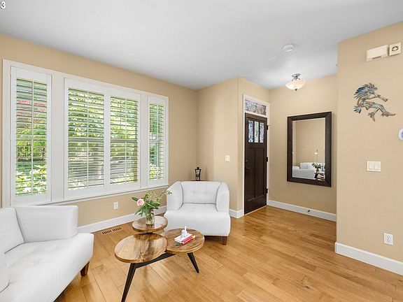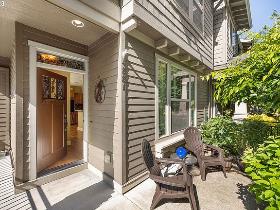 Impeccably maintained Arbor-built end unit in sought after Bethany! This Move-In ready home boasts all of the upgrades including high end trim, Hunter Douglas shutter blinds, powered solar blinds, and engineered hardwood floors throughout. Open concept great room on first level with lots of natural light. Kitchen features granite countertops, eating bar, walk-in pantry, stainless steel appliances, and gas range. Upgraded built-in hutch in dining room and electric fireplace in living room. Spacious primary suite features ceiling fan, walk-in closet, soaking tub, walk-in shower with upgraded backsplash, and double sinks. Second bedroom with a walk-in closet. Bonus loft area and laundry with built-ins upstairs. NEW tankless water heater! 2 car garage with utility sink and overhead loft style shelving for additional storage. Plus 2 additional assigned parking spots for a total of 4 parking spaces! Private front porch overlooks the serene courtyard. Just minutes from shopping, parks, and several trails! HOA includes internet, exterior maintenance, common areas and management!