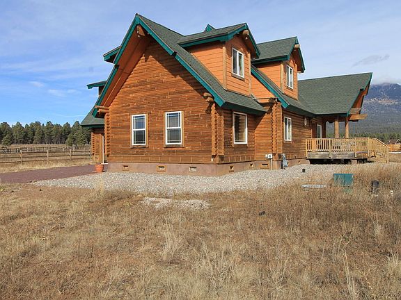 A true Montana log, log home on 1.79 acres at the base of the San Francisco Peaks. Master on the main floor with a beautiful master bath. total of 4 bedrooms 3.5 baths. Attached 2 car garage, wood burning fire place. Living and bonus/Family room. 8 miles from Snowbowl and just minuets from downtown historic Flagstaff. This house needs to be on your must see list. Call today for a private tour.