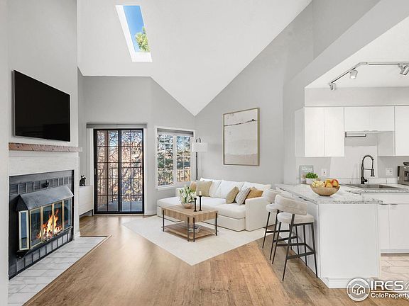 Gorgeous penthouse residence that's drenched in natural sunlight and perfectly positioned near Cherry Creek. Luxury vinyl flooring flow throughout the spacious, open-concept layout which also flaunts 23' vaulted ceilings. Glass skylight and newer windows with custom coverings add to the convenience of this wonderful home and you'll love enjoying your morning coffee or a good afternoon book on the private, shaded patio. The living room boasts a cozy wood-burning fireplace and a bonus wall-mounted heater that can easily be covered with a piece of art if desired. The updated kitchen showcases granite countertops, new soft-close cabinetry and new appliances. Escape outdoors to a private, treehouse-inspired patio. Two sun-drenched bedrooms share a full bath with modern tiles and fixtures. The second bedroom offers flexibility, functioning either as a cozy bedroom or a private home office, complete with elegant French doors. An included washer and dryer set, central A/C and a brand new roof (already paid for by insurance) are added amenities. Ample storage is found in a large bonus attic space with an upgraded locking ladder for access. Situated within a quiet, but friendly community with a low HOA, the central location offers proximity to Infinity Park, Glendale Sports Center, Cherry Creek Shopping, Wash Park and the University of Denver plus easy access to I-25, DTC and the light rail. You'll also love the community's on-site dog park, nearby bike paths (Cherry Creek Trail) and the local farmers market that's walkable from your front door in the warmer months. Less than 1 mile to Whole Foods Market, Target, Home Depot, and 2 King Soopers, a better community and location can't be found.