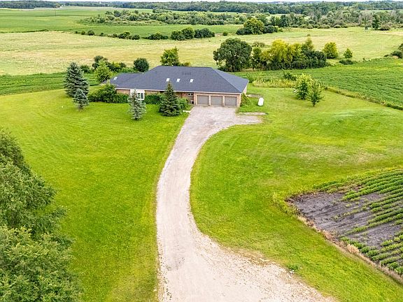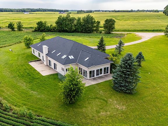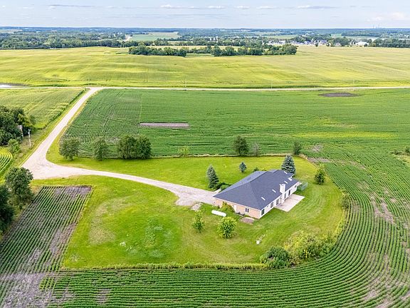 Custom built by developer. Must see astonishing great room design. Huge 55 x 25 living room with 15 foot ceilings with sky lights. All open to granite island kitchen, one level living. Very large oversized owners bedroom with double doors and sliding glass door leading to three season enclosed porch. Overlooking the rolling country side fields. Very private with no close neighbors. This home is discounted for quick sale in need of some repairs. It has a newer roof 2021. Big big garage. Lots of room for gardens. County allows up to 3200 SQ FT out building with bathroom, 14 foot side walls, 35 feet high. The entire house is slab on grade.