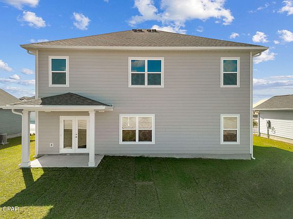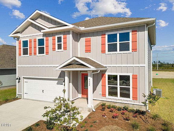 RED TAG PRICE - The Carol is a two-story detached home that is in the highly desirable community of Titus Park. Located on the north east side of Panama City, Titus Park is a short drive to downtown Panama City, the Gulf of Mexico with sugar sand beaches, Tyndall Air Force Base, shopping, dining, and more! The home has a private entrance with concrete pathway, steps, and designer landscaping. Inside, you are warmly greeted by engineered vinyl plank floors that lead you past a flex room and into a bright and open floor plan seamlessly connecting the kitchen and dining area to the living room. Behind the dining area is a door leading you to the inviting, sunny backyard that backs up to a common area. Meticulous attention to detail is presented in the kitchen with granite countertops, white cabinetry with brushed nickel knobs, and stainless steel Whirlpool appliances which includes the following: stove, dishwasher, and microwave. On the first floor there is also a guest bedroom and full bath with the additional bedrooms rooms on the second floor. Bedroom 1 is on the second floor of the home and has an adjoining bath that features a double sink vanity, garden tub and shower. New homes in Titus Park also feature a smart home system that includes a KiwkSet Keyless Entry, Skybell doorbell, automated front porch lighting, an Echo Dot, and a Qolsys touch pad, and customizable LED lighting. For more information, call model office at 850-660-1738. Our model home is open Monday through Saturday 10-5PM and Sunday 1-5PM.