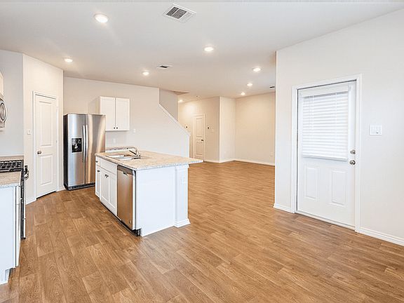 This beautiful 3-bedroom, 2.5-bath home in the Riverstone at Westpointe neighborhood offers 1,700 sq ft of living space with a 2-car garage, central heating and air, and an open Great Room design perfect for everyday living and entertaining. The kitchen features white cabinetry, gas cooking, a large island with breakfast bar, granite countertops, and comes fully equipped with appliances including fridge, stove, dishwasher, microwave, washer, and dryer. Upstairs, the primary suite includes a large tile shower, oversized vanity, and walk-in closet, with two additional bedrooms and a full bath nearby. Vinyl plank flooring downstairs and plush carpet upstairs add comfort and durability. Enjoy the covered patio with retractable shade screens and a fenced backyard, plus easy access to the community pool, playground, and clubhouse. Conveniently located near SeaWorld, Six Flags, shopping, dining, and major highways, this home offers both comfort and convenience. Tenant is responsible for utilities and lawn care, and pets are accepted with a pet fee.