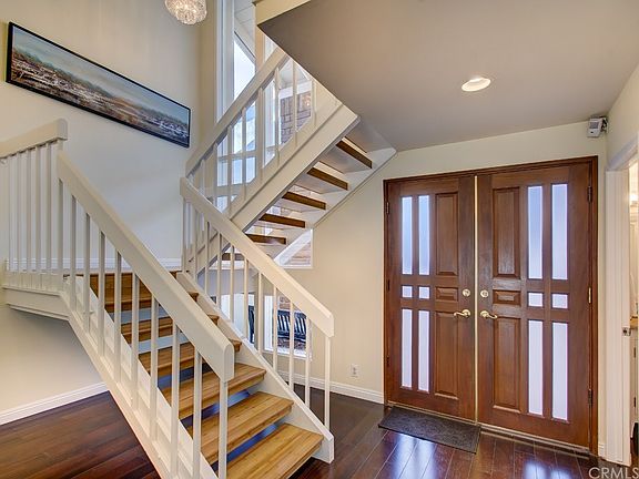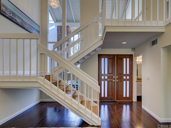Excellent taste and contemporary style are on display in this special home in prestigious University Park! 5 spacious bedrooms, 2 baths upstairs and 1 bath down, extensive renovations throughout the home, huge living/family room with fireplace and two story entry, white kitchen with updated granite counters and stainless appliances, formal dining room, master suite boasts modern, updated bath with freestanding tub, separate shower plus sunroom (great for office, workout room or retreat) and lighted custom cabinets. Open concept floorplan, convenient downstairs bedroom and bath, large windows let in lots of light, installed dual pane windows, plantation shutters and custom window treatments, rich wood flooring throughout (no carpet), custom tile accents in all baths, the list goes on... Large, beautiful, private back yard backs to greenbelt path and includes multiple fruit trees and the charming, gated front courtyard is enhanced with extensive brick work and colorful landscaping. Absolutely beautiful in every way and professionally decorated! Located on quiet cul de sac, on the block right next to the majestic Dave Robins Park with large pool and tennis courts, 2 blocks to Rancho Middle School, close access to elementary and high schools, too, plus there are miles of greenbelts throughout the beautiful community of University Park. Highly regarded Irvine schools including top rated University High.