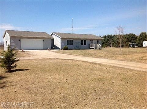First time on the market! Very nice 3 bedroom, 2 full baths ranch style home built in 2004 with approximately 1248 sq ft of living space, with a full walkout basement, not finished, but ready for future living space. All bedrooms are on the main floor, master bedroom with master bath, main floor laundry, nice spacious kitchen with sliders to deck off the dining area. Breezeway (mudroom )off garage, a large 24x30 2 car attached garage, along with a 24x32 Pole barn with cement floors and electricity. Home sits on 4.5 acres with a huge garden area, surrounded by pine trees on both sides of the home, private surroundings. Home is located approx. 500 ft off the paved road. All appliances included with the sale. Sheridan address but Greenville School District (also bus passes on this road to Central Montcalm Sch Dist). Just 6 minutes NE of Greenville. Close to shopping, bike trails, and schools.