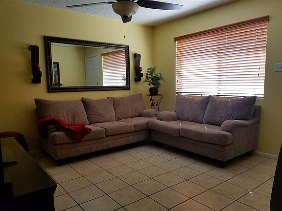 Located in Sierra Sunset, this 3 bedroom 2 bath home is located on a large corner lot with double gate side access. This home shows pride of ownership. It is tiled throughout with wood laminate flooring in the master. Ceiling fans and wood blinds throughout. The kitchen has beautiful dark cabinets with stainless steel stove. This is a must see.