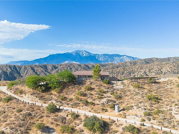 Extraordinary Mountaintop Home: Striking location, perched atop a ridgeline with remarkable views. Proven track record as an Airbnb, with gross income of $151k in 2023 & $124k from Jan–Oct 2024, with an additional $20k+ in future bookings (Buyer to independently verify STR income). Paid off solar. Living room features a wall of glass – five huge windows, approximately 8 feet wide by 5 feet tall – framing snowcapped San Jacinto Mountain, the second tallest mountain in SoCal. Hawks fly past at eye level. Rock fireplace positioned at center of wall, for cozy, crackling fires, while looking out at the alpine conditions atop the nearby mountain peak. Above the kitchen sink/counter stands an additional large glass window facing north, providing yet more stunning views. Custom pool and spa, complete with high-quality stone-work, features equally dazzling views in every direction. Soak in the hot tub at night and stargaze at infinite galaxies above. LARGE 5-ACRE PARCEL. Includes 2-bed, 1-bath Guesthouse on lower tier of property hooked up to water, electric, septic and could be used as a second vacation rental, long term rental, residence, studio or large storage space – needs TLC/Remodel (buyer to check permits). Two private driveways – one to the main house above and another driveway to the private guesthouse location below. Incredible value, incredible property. Morongo Valley is only a short drive to downtown Palm Springs but with cooler summer temperatures and greener hills, known for its verdant flora and jungle-like hikes in the Big Morongo Canyon Preserve. Joshua Tree National Park is equally close. With over one thousand closed transactions in the Hi Desert, this property stands as the singular best views and most stunning location this broker has seen. Whether as a primary residence, a vacation getaway, supplemented by vacation rental income or long-term rental income from the guesthouse once updated, this property has enormous protentional as a once-in-a-lifetime investment given the rarity of similar home locations.