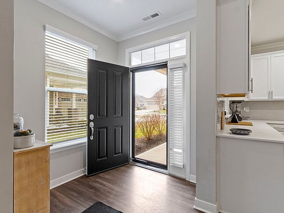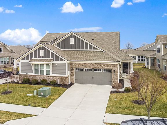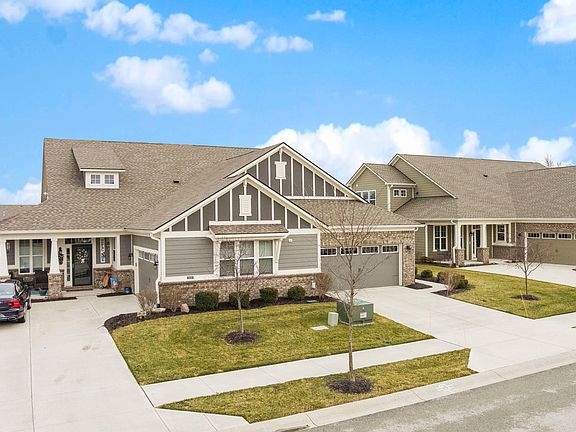Welcome to Pebble Brook Villas, this stunning 2-bedroom, 2-bathroom with sunroom Villa invites you into a world of comfort and elegance. Step into a spacious open concept kitchen with a large central island, tons of cabinets and SS appliances which seamlessly flows into the dining room and great room with gas log fireplace. Experience the convenience of worry-free living with all exterior maintenance, lawn care, fertilization, leaf removal, snow removal, irrigation, and a fully sodded yard included. Revel in the freedom of a maintenance-free lifestyle while being close to shopping and restaurants. Indulge in the luxurious touches throughout the home, from the quartz finishes to the warm ambiance of the gas fireplace. The primary bedroom offers a tranquil retreat with its tray ceiling and spacious walk-in California closet. Primary bath features double sinks and spacious shower. Guest bath with tub/shower. Adding to the charm of this property, a custom-built pergola off bright sunroom enhances the outdoor space, providing a perfect spot for relaxation and entertaining while overlooking picturesque views of serene pond and enjoying the Indiana sunsets. Don't miss your chance to embrace Maintenance-Free living at its finest at Pebble Brook Villas.