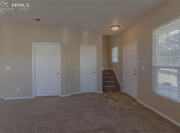 Make this amazing 3-bedroom, 2-bathroom townhome your new home! This townhome is located in Soaring Eagle and conveniently located near military bases, parks, and just minutes away from the Powers corridor. On the main level, you will enjoy the large sized living room with tons of natural lighting and fireplace to cozy with family during those cold Colorado nights. The kitchen features bright cabinets, eat in bar and all kitchen appliances and washer/dryer are included. There is also a 1/2 bath on the main level. Upstairs is a generously sized primary suite with ensuite bath, dual vanities, tub, and shower, a walk-in closet. Down the hallway there are two additional bedrooms and full bathroom. The townhome also features central air and 2-car garage with lots of space for storage. This one won't last long - schedule a showing today!