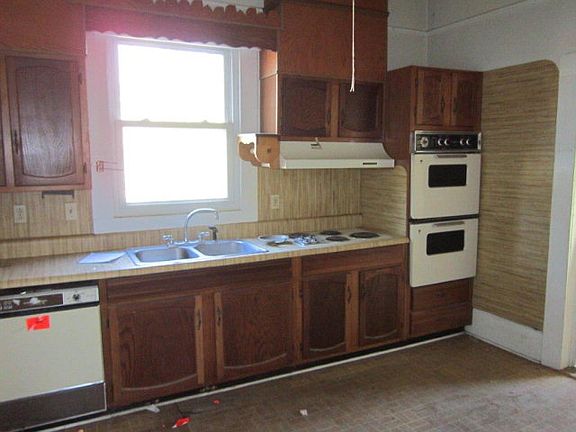 Single-Family Dwelling, Single-Level-3 br, 2 bath, living, dining, kitchen, open covered front porch, w/ left side driveway, large lot, older home with high ceilings and solid wooden 4 panel doors. Hardwood floors, 2 h2o units, 2 fuse boxes and wire present, decent curb appeal, solid wood 4 panel doors, upgraded vinyl windows, large deck at left side door, large lot, wainscoting in living room and hallway, fireplace, high ceilings, dishwasher, stove, oven.This is a rent to own home, call today for more information of this great property.Please call @ 866-934-2424, Thanks.