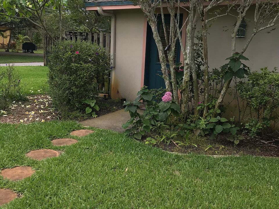 Secluded country setting with tropical landscaping. This Beautiful luxury studio has access out to a fenced in pool. Beautiful curbed walkway with stone walls leading to Private entrance tile flooring, architectural details, crown molding, abundant wood cabinets with tile countertops in the kitchen.Glass cooktop oven, microwave, refrigerator with ice maker and linen closet. Laundry room includes Full sized Washer,dryer and a lot of storage cabinets.All utilities included, Air, electric, water, cable, high speed internet. Extensive outdoor nigh lighting, very safe quiet neighborhood. Very close to 95, turnpike and shopping. Owner lives on premises. No smoking, No pets, Adults. All amenities included. Water, AC, Trash, Internet,Cable.