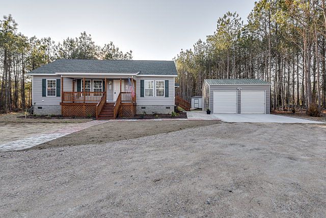 Like New Home on 4.86 Acres in Nash County Rocking Chair front porch! No City Taxes! Practically newly constructed Modular home with split bedroom plan and island in the kitchen. Two car detached garage and workshop area, detached 10 x 8 storage shed. Nicely landscaped with concrete paver walkways to home and garage. Wooded lot in county offers great privacy.