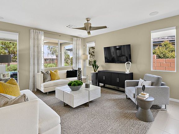 Built specially for age restricted 55+ communities.Ready Early 2022! Don't miss the opportunity to own a model home! The single-story Plan 2-Onyx is crafted for easy living with a contemporary open-concept layout, chef-inspired kitchen, and generously sized owner's suite. There is plenty of room to entertain friends and family in gathering room or outdoors in the comfort of your huge, covered patio. Relax in the spacious owner's suite located at the back of the home for privacy. Enjoy the spa-like owner's bath featuring a walk-in shower, dual vanities, and walk-in closet. Bedroom 2 is located at the front of the home with an adjacent full bath. Structural options include: Patio access door at owners, and extended windows at kitchen. Model home sale at 4884 E Cactus Canyon Drive includes: Fridge, media equipment, curtains! Furniture and accessories available to be purchased separately!