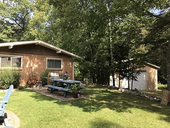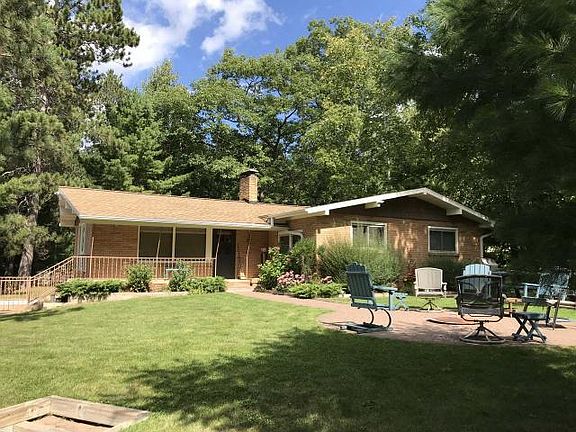Here is your beautiful brick home with a 28'x40' pole building, circle blacktop driveway, beautiful landscaping, and 150 feet of sandy pebble frontage on 2100 acre full-recreational Lake Metonga! This 4 BR, 3 full bath home features a spacious family room with cathedral wood ceilings, a cozy brick fireplace, and plenty of windows to enjoy the sunsets. The bathrooms boast all tile showers or tub surrounds, and the home has plenty of bedrooms for family and friends. The walk-out basement includes a drive-under garage, a large laundry room with a kitchenette, and several bonus/storage/work rooms. Relax by the brick fire pit or head out back onto the ATV/snowmobile trail or wooded public area to hunt or view nature. Furnishings are negotiable. Dock and appliances are included. Home lies across the road from the lake providing lower taxes for you, but with endless fun! Call today to begin making memories!