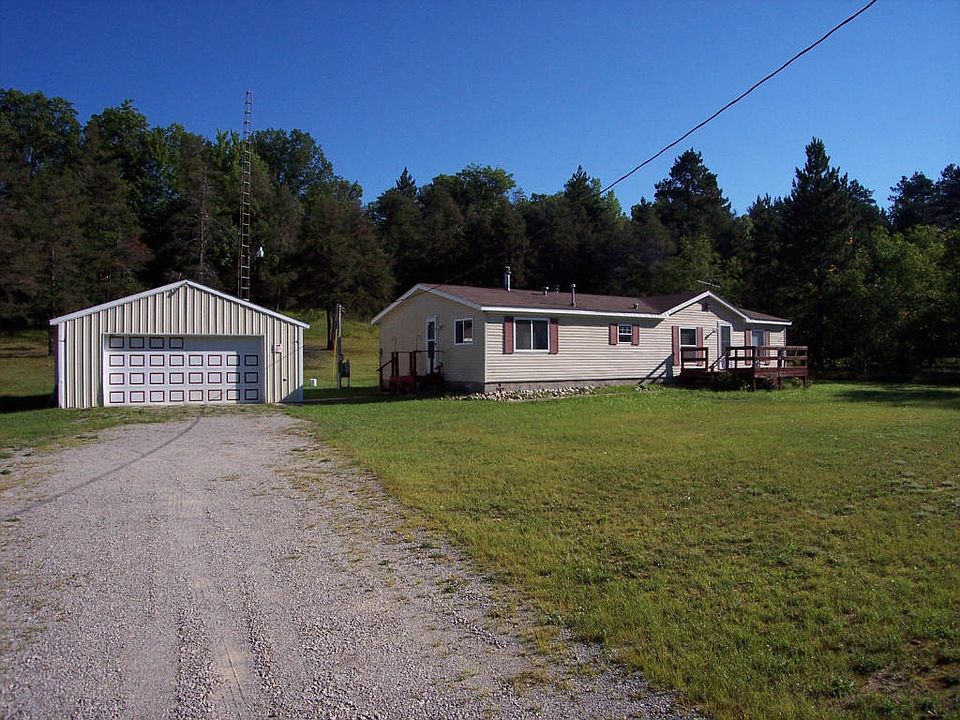 3 Bedroom, 2 Bath Ranch Styled home with detached heated Pole Barn located in a private setting that adjoins State Land. This home is less than 1 mile from the state snowmobile trail and includes the range, refrigerator, washer, dryer, dishwasher and wood stove. Interior is accented with knotty pine walls in the great room and hardwood flooring in the kitchen and dining areas.