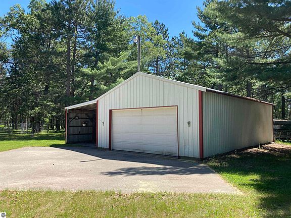 79 EXQUISITE, WOODED ACRES, boasting a charming 1100 square foot home or cottage alongside a 24x40 pole barn/garage with lean-to for great storage. Nestled in the tranquil area of Damon, this property is a haven with its dual frontage on well-maintained gravel county roads, while also bordering State Land on two sides. Embark on endless adventures with a network of internal trails and direct access to ORV trails, promising great hunting, an ocean of wild blueberries, and tons of fun! Inside, the home envelops you in warmth with its abundance of knotty-pine accents and a captivating stone and brick fireplace, complete with a woodstove insert for cozy evenings. Cozy, with a full bath, a convenient pantry room, and a cleverly-designed bunk bed nook, offering additional sleeping quarters for guests. Outside, a covered porch and a fenced backyard provides a secure space for pets and relaxation. Cement parking, Submersed Pump well, and lots more. If you've been looking for a truly amazing property, this could be the one!