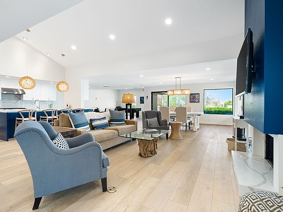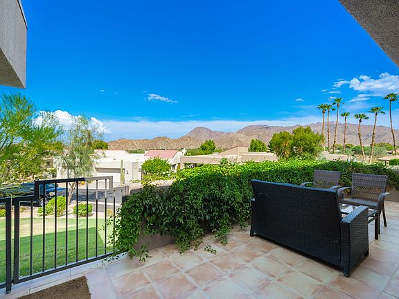 Leased 11/1/25-4/31/26. Perched on an elevated lot, this beautifully remodeled home offers breathtaking mountain vistas and over 2,300 sq ft of luxurious living space. The home features two bedrooms plus a dedicated office adjacent to the primary bedroom, perfect for both relaxation and productivity. The expansive great room boasts a cathedral ceiling, plantation shutters, new luxury vinyl plank floors, creating a bright and airy atmosphere ideal for entertaining. Enjoy the seamless flow between the living, dining, and family entertainment areas, which includes a custom pool table and magnificent mountain views. The chef's kitchen is a culinary delight, showcasing modern quartz countertops, new kitchen cabinets, a Thermador commercial range and oven, a second GE oven, a Thermador dishwasher, a built-in KitchenAid refrigerator, a breakfast bar, and a walk-in pantry. The spacious primary suite features an additional office space that remains discreetly separate from the bedroom area. The back patio offers sweeping mountain views and wraps around to the side of the house, complete with a Weber barbecue for outdoor gatherings. Additional highlights include an oversized garage accommodating two cars and a golf cart, as well as access to a large community pool and spa with 180-degree mountain views. Ironwood Country Club is ideally situated near El Paseo for world-class shopping, dining, the McCallum Theatre, The Living Desert, and a variety of outdoor activities. NOW AVAILABLE ALL MONTHS, SEASONAL OR LONG TERM RENTAL