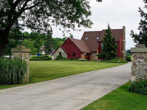 Clarification on finished square feet. The listed square footage is a combination of the guest house and the main house. This represents the total finished square footage. Situated in a private, quiet, rural setting, this property exudes country living at its finest! The village of Fredonia, home of Fredonia State University is just 2 1/2 miles away, while 45 minutes east or west via I90 takes you to Buffalo or Erie, PA respectively.This unique beautiful estate features a 3 bedroom passive solar home with attached 2 bay garage, an additional 3 bay garage steps away from the main home and guest house with garage. The house has a partially finished off basement area, suitable for an additional bedroom or office. The passive solar design provides heat for the entire house on sunny spring, fall, or even winter days. Oak wood flooring runs throughout the great room, front foyer, upstairs hallway and master bedroom. Wood made cherry cupboards set off the spacious kitchen/eating area. The 3 bay garage provides room for extra vehicles and toys, as well as handy upstairs storage.The guest house has unlimited possibilities which include lodging for out of town friends and family, or comfortably entertaining groups of up to 35. The partially finished upstairs has the potential for 2 additional bedrooms and a bathroom. NEW UPDATES:-100% sun room update (new tile, paint, knee wall, glass, etc...)-New metal roof (standing seam) on guest house and 3 Car Garage-New shaker shingle siding and windows on guest house -New high efficiency boilers in main house and guest house -New leech bed.
