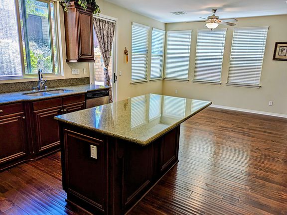 --Large kitchen with granite topped island, granite countertops, Stainless steel appliances including refrigerator, built in GE oven and microwave, dishwasher and stove. All four bedrooms, washer and drier are on the second floor. The back yard is spacious with plant and trees.