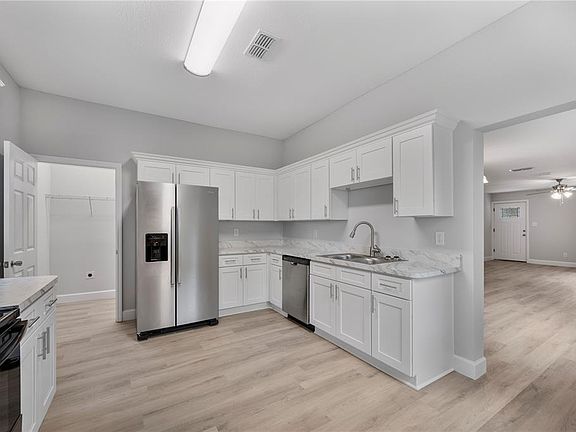Charming and move-in ready! This beautifully updated 3-bedroom, 2-bath home sits on nearly an acre of land, offering space, privacy, and flexibility. Step inside to find a bright, open layout with luxury vinyl flooring, fresh paint, and modern finishes throughout. The kitchen features stainless steel appliances, a sleek backsplash, and plenty of counter space—perfect for cooking and entertaining. The spacious primary suite includes an en suite bathroom and cozy carpet underfoot. Enjoy peaceful mornings on the front porch or gatherings on the back patio overlooking your oversized yard with room for a future garage, garden, or play area. Newer systems include new windows, new a/c, new septic tank and drainfield and a new tankless water heater comfort and efficiency. Located in a quiet Mulberry neighborhood with no HOA and just minutes from South Lakeland conveniences. Qualifies for USDA financing! Schedule your showing today—this one won’t last!