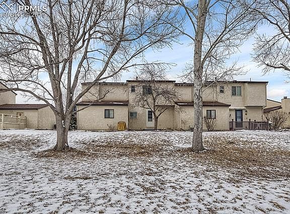 55+ Community! 2 bedroom, 1.5 bath townhome with an attached 1-car garage that backs to open space providing you with privacy! Gleaming laminate wood flooring on the main level! The living room has vaulted ceilings, recessed lighting and a decorative faux fireplace with remote controlled insert! The bright kitchen has a pantry and all white cabinets and appliances making it a place to enjoy preparing meals. There is a walk-out to the private patio in the back making it easy to grill and entertain outdoors! A half bathroom with a washer and dryer complete the main level! Upstairs you will find 2 nice sized bedrooms and a full bathroom. The master bedroom has a built-in desk area with shelving and a mounted flat screen TV that stays! Enjoy relaxing in the hot tub after a long day! Close to the Colorado Springs airport, shopping and restaurants.
