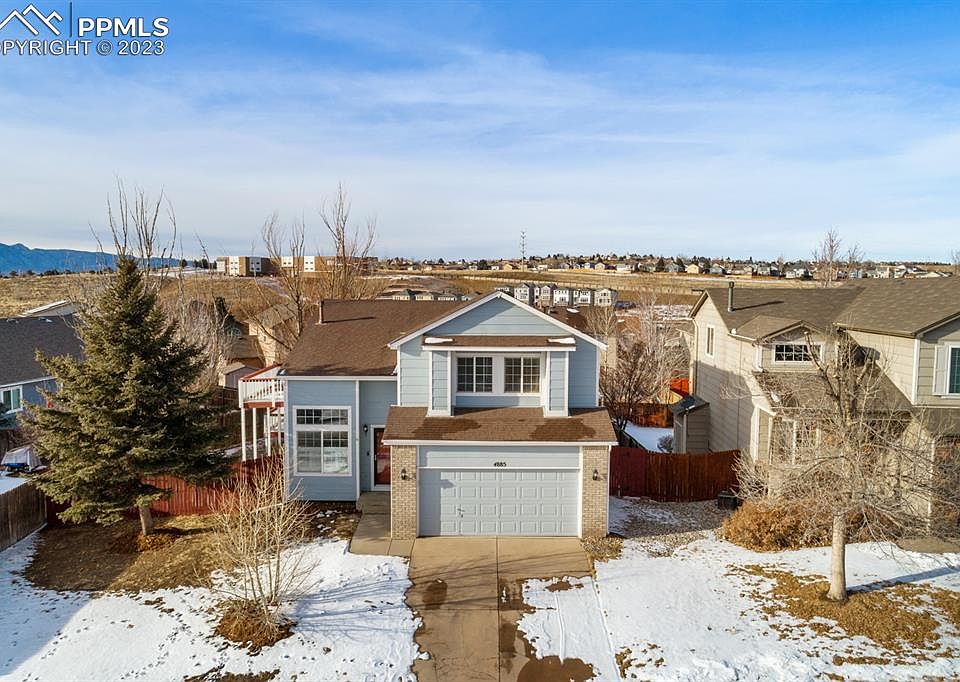 More than you are expecting and a lot of great potential. This home offers an opportunity to make it your own with exceptional amenities. Open your front door to a lovely vaulted great room, customized with charming plantation shutters and direct kitchen access. This gourmet kitchen has tile counter tops, island, recessed lighting, hardwood floors, 3-year-old stainless steel appliances including a gas range. An ADDITIONAL bonus room/sunroom off the kitchen/dining area with wall-to-wall windows, ceiling fans, and a walkout to the bi-level deck. The upper level includes three bedrooms including a HUGE master bedroom with walk in closet, as well as a master retreat/nursery/office/yoga studio or gym (basically whatever you heart desires!) with access to an upper deck complete with AMAZING views of Pikes Peak. The basement remains unfinished and offers plumbing for additional expansion. Close to parks, award winning D11 schools, fitness center with pools, and grocery shopping just around the corner, this house is ready to become your home! Carpet just professionally cleaned. Sprinkler system checked out, serviced and blown out for winter.