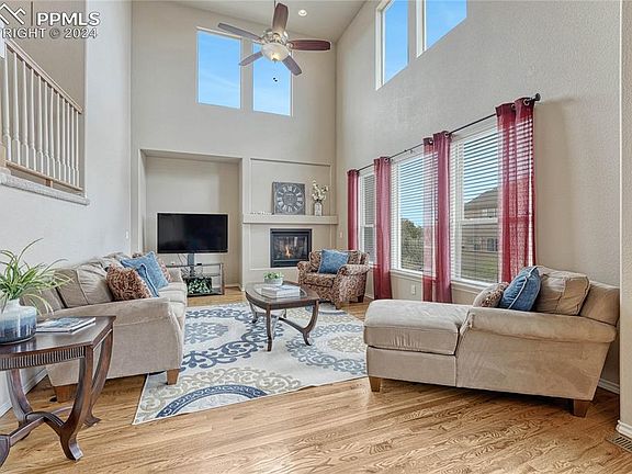 Step inside this spacious 4-bedroom, 4-bathroom home with 3-car tandem garage, tucked in a quiet cul-de-sac in the Cordera Master Planned Neighborhood. Home is full of natural light & hardwood floors on the main level. Enjoy this open living concept. Living area has gas fireplace, vaulted ceiling, floor-to-ceiling windows, adjacent to dining and kitchen area. Kitchen features an island with extra storage & a walk-thru butler’s pantry, that could be a coffee bar, to the formal dining room. At the end of day, relax in your large primary bedroom that hosts a two-sided fireplace that is shared with a stand-alone soaking tub. Large bathroom has plenty of storage with walk-in-closet & a separate linen closet. 2nd & 3rd bedrooms are upstairs along with a full bathroom with dual vanity & linen closet. Convenient laundry room is upstairs close to bedrooms. Washer & Dyer included with sale. Bonus loft area upstairs includes a walk-in closet with the potential to make a 5th Bedroom. Garden lower level has the 4th bedroom & a full bathroom. This lower level area awaits your personal design; a family room with game room, home theater, gym, or ? There are water hook-ups for a wet bar or kitchen. Step out from the main living area to a lovely sun deck with views of Pikes Peak, continue down the stairs to enjoy the fully landscaped backyard. In the 3-car tandem garage, there is a built-in shelving system for extra storage, can be removed easily. Home is conveniently located steps away from the Happy Meadows Trail System Tunnel. Use tunnel to access the Cordera’s Grand Lawn/Community Center and District 20's Chinook Elementary and Middle School campuses. Pools, outdoor fireplaces, exercise room, YMCA lead exercise classes w/daycare on certain days of the week for certain age small ones & the Concert Lawn at at the Community Center. Included in your HOA dues! Home is conveniently located, about a 10-min drive to I25 or Hwy 83, & close to Parks, green space, dining & shopping.
