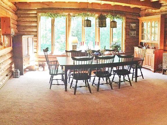 If you appreciate 1934 log architecture w/ beautifully designed additions & updates plus 320 feet of Portage lake frontage, this is for you. If you are expecting a perfect new house this is not for you. This gorgeous property features a 5 BR, 4 bath home. The kitchen was updated with top of the line cabinets, including double pantries; pull out drawers and shelves, gas cooktop, built in oven & microwave plus Silestone counter tops, offset by a tile backsplash on a Duraceramic floor. Off of this is a breakfast nook w/ window seat & built in desk. A large walk-in pantry is tucked under the stairs for even more storage. A 3/4 bath w/ tile & stone walk in shower & huge vanity is off the main floor laundry. The living room has a gorgeous stone fireplace with a gas insert, the dining area has the original copper lights, & this is a large open space just off the kitchen perfect for entertaining. The family room was the old front porch & converted many years ago, a corner wood fireplace makes this, while large, a cozy inviting space. A screen porch across the entire front of home was added 5 years ago. The second floor of the original log home has 4 BR, 2 with nice closets (1 cedar lined), 2 without & a full bath. In 2006 the owners added a master suite with its own air conditioning, & propane heating system. The windows are triple pane with blinds. There is also another laundry area in this fabulous space. The large bedroom has a gas fireplace & double walk in closets with organiz