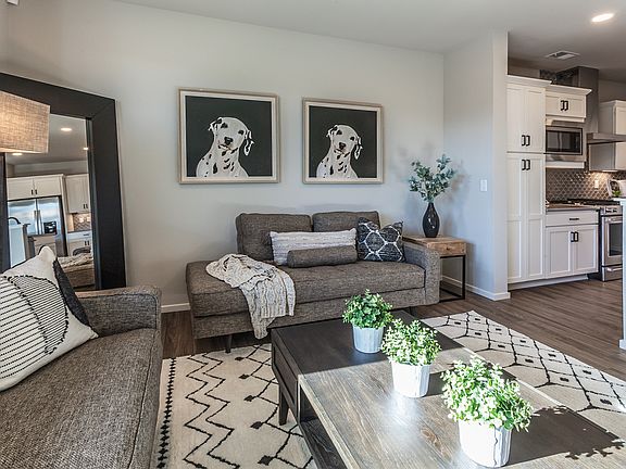 The highly desirable Trailside on Harmony community features a splash pad, parks, a community pool, pickleball courts, and walking trails. This wonderful townhome features an open floor plan and a covered front porch. It is equipped with central air conditioning and offers many additional amenities. The gorgeous kitchen includes stainless steel appliances, a gas range, and overlooks the living room. You'll find solid surface granite or quartz countertops in both the bathrooms and the kitchen. The property also boasts a fenced-in front courtyard, a two-car attached garage, and vinyl plank flooring in the entryway, living room, kitchen, dining room, bathrooms, and laundry area. *Photos from previously built home and therefore may depict different finishes No students, please