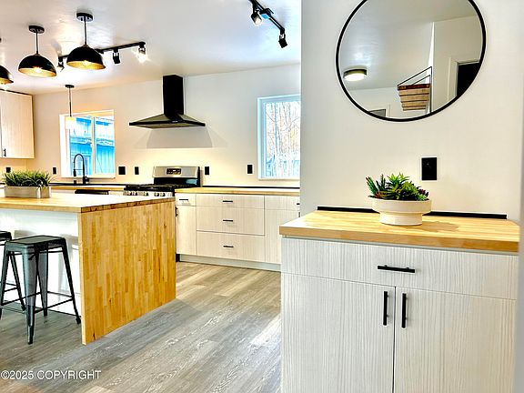 Looking for the Perfect Home-and-Business Combo?Located in the desirable Cottonwood Shores subdivision, this beautifully remodeled home and shop package is the perfect solution for a small business owner or anyone seeking the ultimate Alaskan lifestyle.Completely reworked from the ground up, this property blends modern convenience, thoughtful design, and unmatched functionality. Key Features of the Home: Fully remodeled in 2024/2025 with meticulous attention to detail. Brand-new systems throughout, including: Septic system Heating system Water heater PEX water piping Waste piping Modern electrical upgrades, fixtures, and lighting. Updated insulation and hand-textured drywall for a sleek, contemporary look. Durable 50-year roofing and new vinyl siding for long-term peace of mind. Gorgeous LVP flooring throughout, no carpet for easy maintenance. Custom cabinetry and butcher block countertops in a spacious, open kitchen. This home has been designed for both comfort and practicality. The private master suite on the top floor provides a peaceful retreat, while the expansive kitchen and living areas create the perfect space for entertaining or family gatherings. The Shop The 1,760 sq. ft. detached shop offers endless opportunities: " Perfect for launching a small business, storing Alaskan toys, or converting into a rental property. " Features space for an office, restroom, and stock room. " Ample parking for clients, customers, or family BBQs. Exterior Highlights " Mature landscaping with established lawns and fencing. " Paved circular driveway for easy access and plenty of parking. " Prime location near a busy gas station and convenience store, ideal for advertising your business with a fence sign! Whether you're seeking the perfect property to grow your business or simply a home that has it all, this one is ready to deliver. Let it speak for itself. Schedule a showing today! FSBO