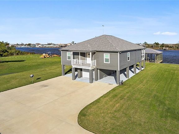 BAYOU FRONT PROPERTY! Approx. 4 acres of land with a 3 year old home overlooking the bayou front. Enjoy the morning sunrise and evening sunsets on covered porch. Bulk head, 45 x 30 covered boat slip with metal roof, 2 slips with electric hoist and cleaning area in middle landing. 24x 31 metal storage awning. Open floor plan, shiplap walls, island bar, spacious bedrooms and half bath downstairs. Whole house generator, tankless water heater and garage for extra storage. Plenty of parking on concrete driveway