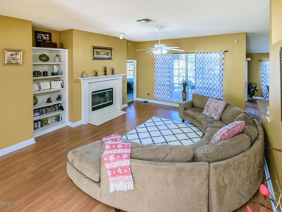 Lovely priced, Lovely one story, 4 Bed. 2 Bath, Nice split floor plan home in a move-in-ready state with plenty of natural light, great view of the Fountain in the Pond. All this in a highly sought after community in Mandarin. Laminated floors all through out except kitchen and three bedrms with new carpet. New painted walls. Beautiful master with two closet spaces (One walk-in). 4th Bedrm can be used as an office with view of the fountain in the pond. Flex room/sitting room with natural light. Indoor laundry. Nice kitchen layout with breakfast bar & new tiled floors. Two car garage. Nice patio & backyard for BBQ, over looking fountain in pond. Community play ground for kids. Great schools around. Plenty of shops & entertainments around. Send seller an offer. Make this house your home