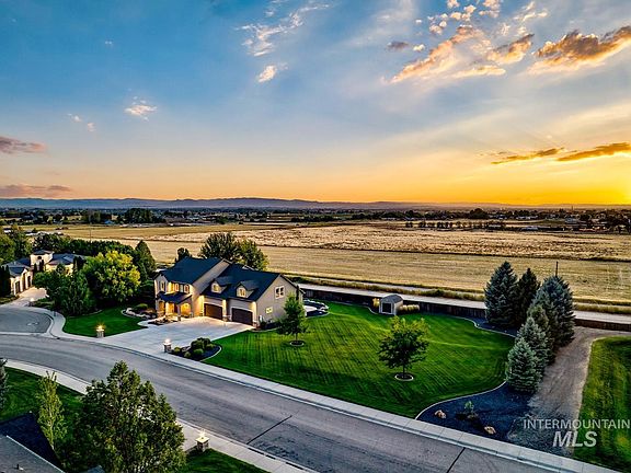 If wide open spaces and room to breathe is what you desire, you must visit this incredible home just on the outskirts of Boise in desirable SW Meridian. With almost an acre of room to add a pool or large shop & easy access to I-84, this home has so many possibilities. The entertainer will love the chef's kitchen (2 pantries, 6 burner cooktop, 2 ovens, 2 sinks, stubbed for a gas grill, 2 dining spaces) & huge theater room with its own mini kitchen and bath! The tinkerer will love the almost 5 car garage w/ a pull through door, designed for boats, RVs & more. The home office dweller or crafter will be thrilled to see multiple options for the perfect set up, & no matter the generation, the oversized rooms, huge laundry space, loft, giant yard, no rear neighbors, play spaces for all will appeal to everyone in the home. Tucked on a very private street w/ very limited access, this tiny little neighborhood has its own community well & septic for incredibly low utility costs. A home that is hard to find these days!