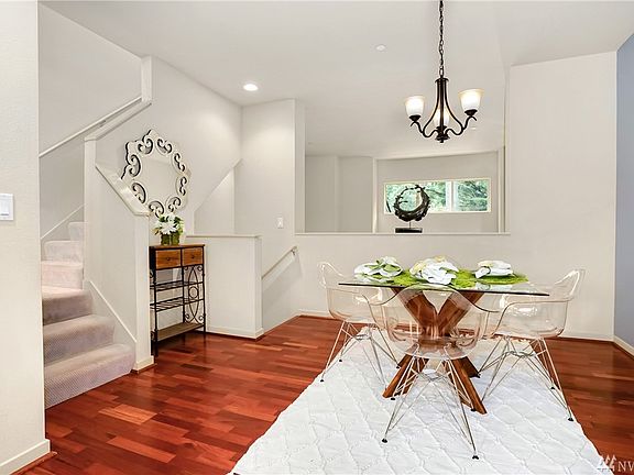 Architecturally stunning, and backing to the forested greenbelt. The Camden Townhome is located in the Harbour Pointe area. This home has been very well maintained. Large entry with stairs leading to sunken living room with tall ceiling. Door out to private deck. Large formal dining room looks down at the LV, and adjacent to custom kitchen. Deck off kitchen too! Laundry room off kitchen. 2 bedrooms up stairs both with their own bathrooms. Attached garage. No rental cap or pet restrictions.