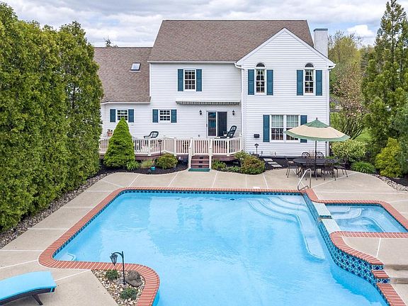 Exceptional custom-built Fox Hunt Estates property! This meticulously maintained and well-appointed home offers 3 fabulous levels of living, plus a finished basement and your very own private backyard resort. This property offers privacy in a mature tree lined neighborhood and is conveniently located just minutes from the Doylestown borough restaurants and shopping. As you enter the foyer your feel the warmth and appeal of this rich traditionally charming home. The gourmet kitchen on the main level of the home features a large center island with seating, stainless steel appliances, granite counters, and tumbled marble back-splash. Kitchen dining area fits a table for six or more and leads to the deck and pool area. The large family room adjoins the kitchen in this open floor plan and features a gorgeous fireplace with wood mantle, brick front, the famous Mercer tiles and gas logs. The lovely formal living room and dining room with tray ceiling is perfect for entertaining, but the outdoor parties are sure to please with an expansive deck and patio that leads to the custom heated in-ground pool and spa with waterfall. This main level is completed with a powder bathroom and oversized laundry room with storage cabinets, sink and shower to use after swimming. Take the gleaming hardwood staircase to the second floor that has wood flooring through the hallway. Bedrooms all have solid surface flooring. The master retreat features vaulted ceiling, walk-in closet with custom organizers and en-suite bathroom. The updated master bath has double sinks, tiled shower with body sprays and frame-less glass door and jetted tub. Three generous sized bedrooms and updated hall bathroom complete this floor. The sunny 3rd floor can be used as an office, playroom, or additional bedrooms and has its own heat and air conditioning. Head to the lower level for the finished basement with wet bar and beverage refrigerator, wine cellar, half-bathroom and a flexible design as well as heat. If you haven't fallen in love already...this home has a backyard oasis and you may never feel the need to vacation again. Beautiful heated in-ground pool with water features, attached hot tub, and maintenance free deck provide two levels of outdoor entertaining space. Large green lawn and shed with garden area behind a picket fence. Professionally landscaped and offers privacy backing to woods. In addition, there's a fully equipped in-law/AuPair suite with it's own kitchen, living room, dining Room, full Bath with walk-in shower and private bedroom with balcony and double closets. The entire suite has gleaming hardwood floors and its own heat and air conditioning. This home has too many upgrades to fully list: Sonos sound system hardwired throughout house, pool area and yard, Andersen windows, Main HVAC for home was replaced in 2016, Roof 2008 and pool recently resurfaced. Central Bucks schools and great commuter location to NJ and Philadelphia. Book your private showing today! This one won't last long.