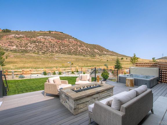 Almost New built in 2019, Ranch Style home in desirable Montane tucked in the foothills community. Backs to open space with great views. Over 1.3 acre lot! Beautiful upgrades throughout! Wide plank flooring, custom stone fireplace and designer touches. Great floorplan with gourmet kitchen that opens to great room. Doors leading to deck with built-in firepit and sunken hot tub. Main floor master with luxurious master bathroom. Designer touches throughout! Private Casita on the main level - perfect for guests with own entrance, separate sitting room, wet bar with microwave and attached private bathroom. 3rd bedroom on the main level and adjacent bathroom plus a main floor study. Downstairs is a spacious great room. Huge workout room! 2 additional bedrooms plus full bathroom. Additional unfinished basement for storage. House beautifully landscaped front and back. Fenced yard that can lead to trails out the back. Great community around the corner from Red Rocks Country Club with 18 hole private golf course, clubhouse and pool.