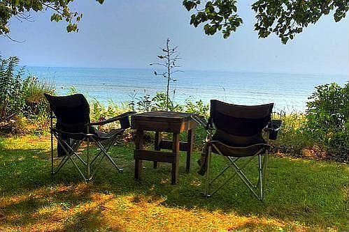 Charming cottage set back just yards away from Lake Michigan with 100 feet of Lake Michigan frontage. Vaulted knotty pine great room with beamed ceiling and step saver kitchen. It was built sometime in the 1940's and is not totally finished. It is set for three seasons some electric baseboard heat. Situated on a private road with just a handfull of other homes. A real get away just a short distance from the city. Very private and very special!